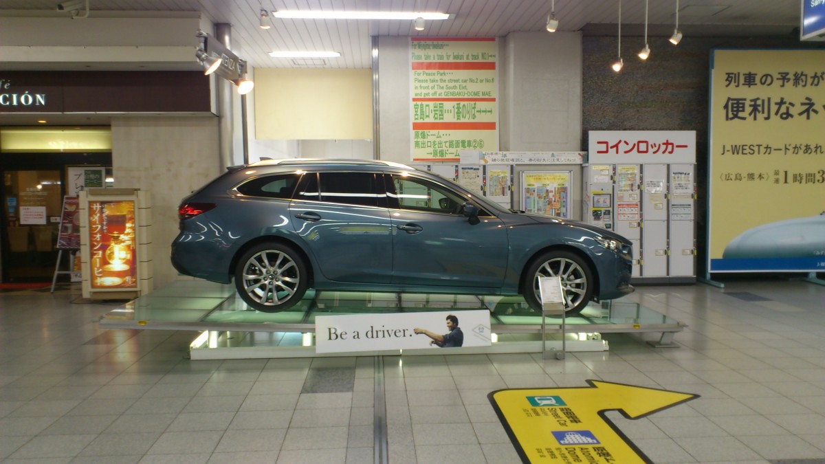 新幹線で広島駅に降り立つと、早速、マツダ車が出迎えてくれます。